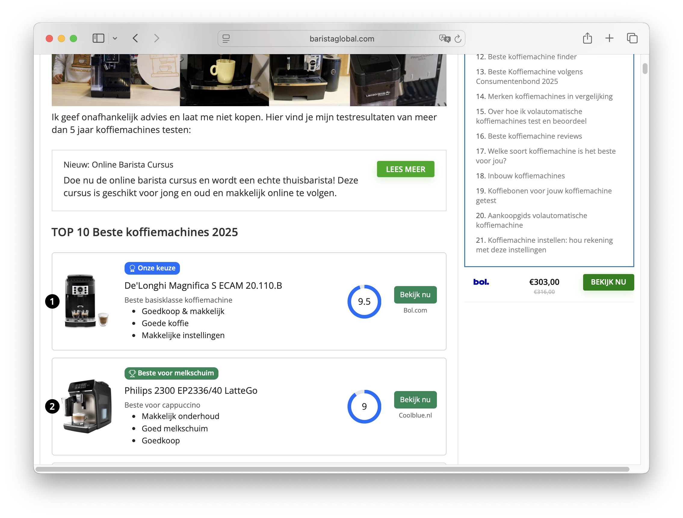 A few great examples can be found in the “Success Stories” section of the Bol.com affiliate portal. For instance, Kindcadeautips.nl focuses on children’s gift ideas and monetizes toy and book recommendations with Bol.com links. Meanwhile, BaristaGlobal.com caters to coffee lovers by reviewing espresso machines and accessories. Both sites use the Content Egg plugin to insert Bol.com products directly into their WordPress posts. Over time, these strategies have helped them build steady organic traffic and reliable affiliate income.
