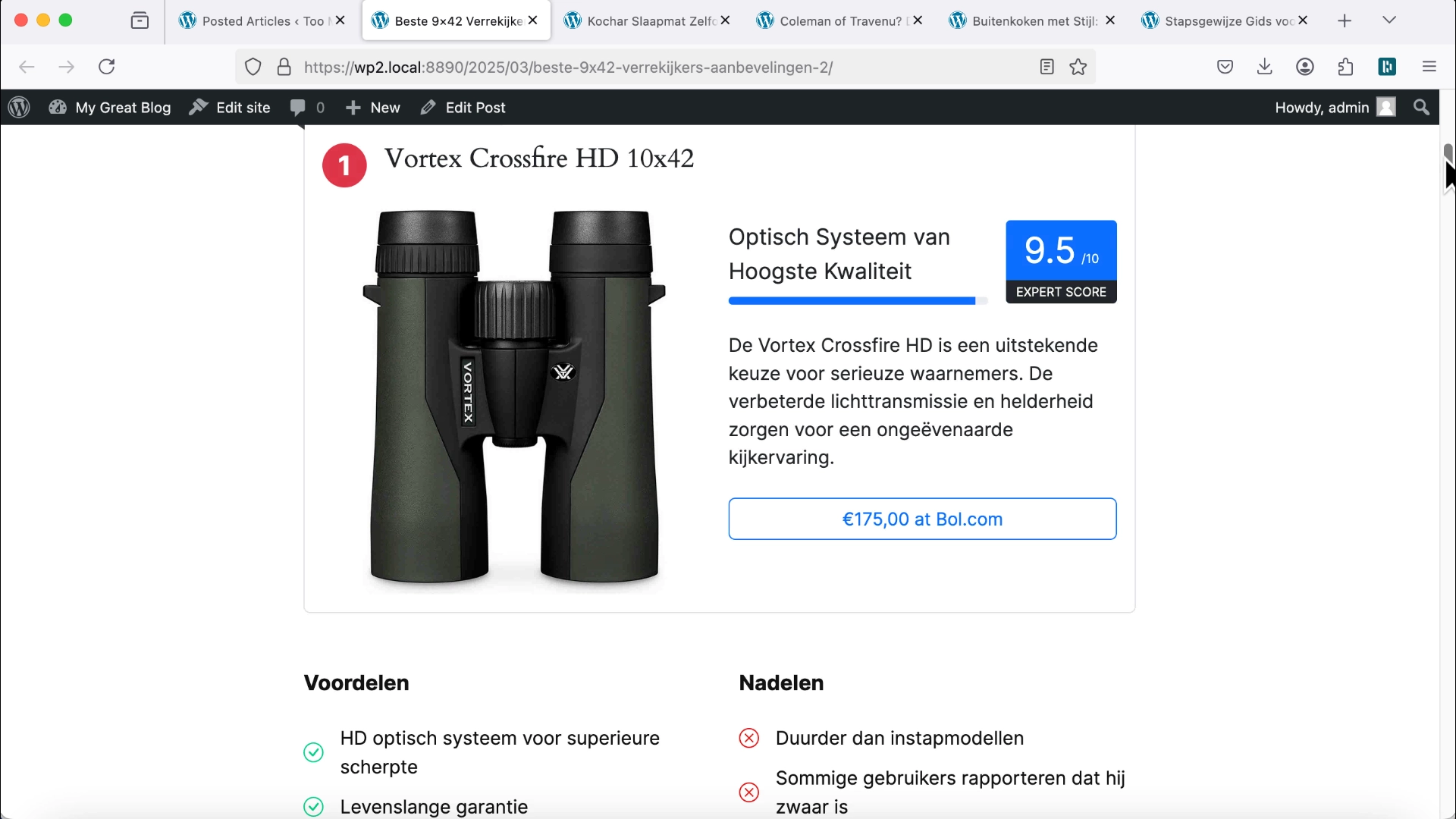 Side note: If for some reason you choose not to use TMN or you want to write content yourself, you can still apply the principles from TMN’s approach. Try to cover a mix of content types on your site: money pages (like product roundups and reviews that directly generate commissions) and informational pages (how-tos, tips, etc., which bring in traffic and build authority). Even your informational posts can include a few affiliate links subtly. Content Egg can be used in all these article types to insert products contextually (for example, a blog about “10 Coffee Brewing Tips” could feature a couple of coffee grinders or specialty beans from Bol.com).