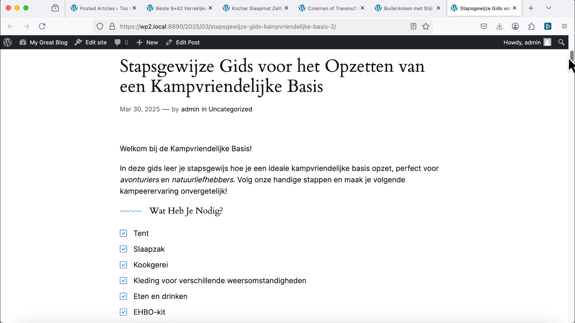 • Format everything using Gutenberg blocks (and the Greenshift framework) to ensure it’s nicely presented. This means when you view the post, it doesn’t look like a raw AI dump; it looks like a polished blog article with styled product boxes, bullet points, and so on.